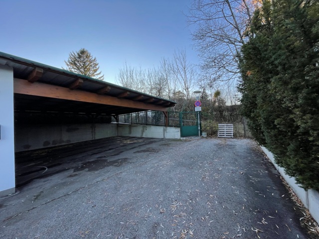 Erschlossen ist die Liegenschaft von zwei Straßenseiten, einmal über die Gartenseite und einmal über die Garage und das Carport mit 3 PKW-Stellplätzen.