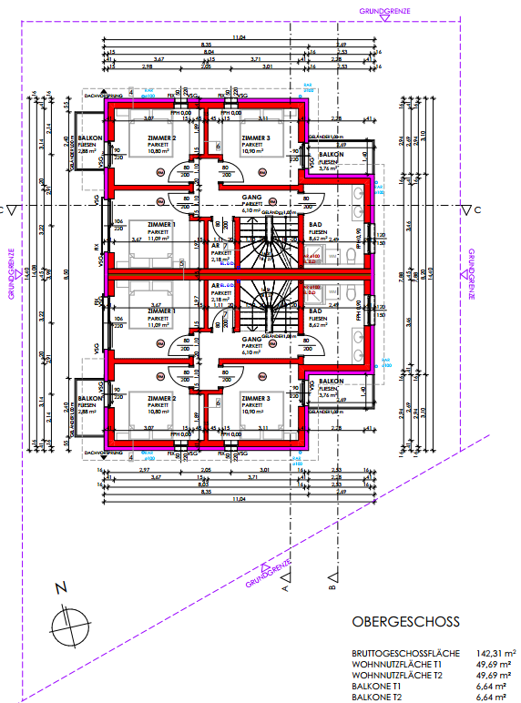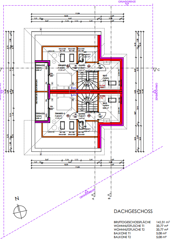 Erzielbare WNFL lt. Entwurf: ca. 206m² zzgl. Freiflächen