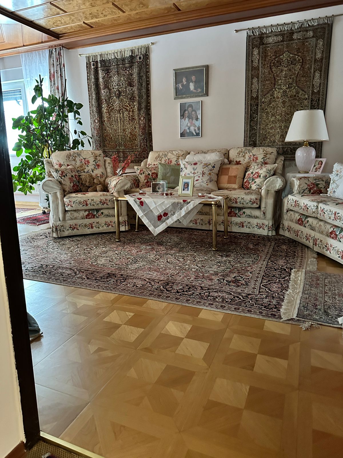 Heizung: In jedem Stockwerk befindet sich ein Kachelofen, die Beheizung erfolgt mit Holzpeletts.