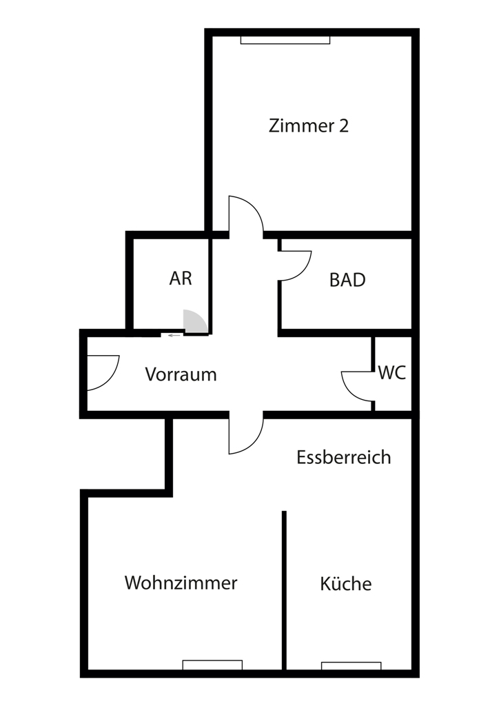 Raumaufteilung: Die Wohnung teilt sich in ein großzügiges Wohnzimmer mit Essbereich und separater Küche, ein Schlafzimmer, Badezimmer mit Eckbadewanne, extra WC, Vorzimmer und Abstellraum.