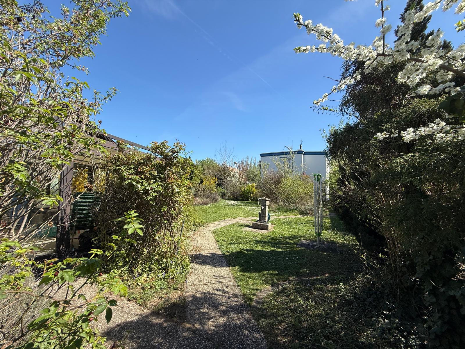 Zum Verkauf gelangt ein in ziegelmassiv erbautes, sanierungsbedürftiges Kleingartenhaus bestehend aus Wohnkeller und Erdgeschoss mit einer Wohnfläche von ca. 112m² und einer 16,50m² großen Terrasse. Der ältere Teil stammt aus den 1930-iger Jahren und in den 1990-iger Jahren erfolgte ein Um- und Ausbau. Das Haus befindet sich auf einer Doppelparzelle mit einer Größe von ca. 413m² (inkl. anteiligen Allgemeinflächen gesamt ca. 455m²) und wird im Eigentum (ideelle Anteile) erworben.