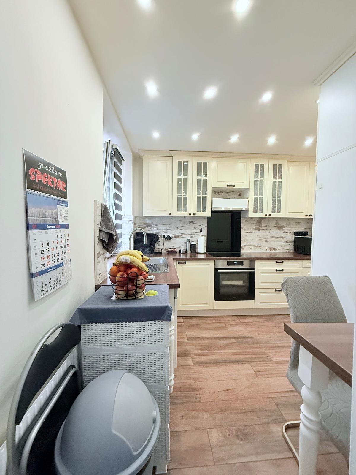 Die Räumlichkeiten gliedern sich in Vorzimmer, Wohnzimmer, 2 Schlafzimmer, Küche mit Zugang zum Badezimmer und eine separate Toilette.