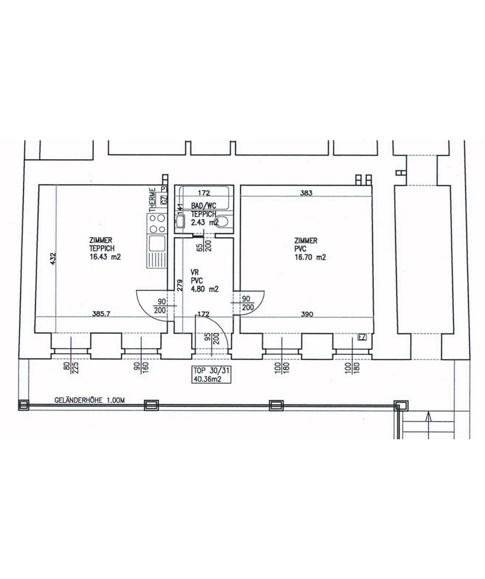 Die ca. 40,50qm teilen sich in ein Wohnzimmer mit Einbauküche, Schlafzimmer, zentraler Vorraum und einem Duschbad mit WC. Geheizt wird mittels einer Gasetagenheizung und zur Abkühlung an heißen Tagen gibt es eine KLIMAANLAGE.