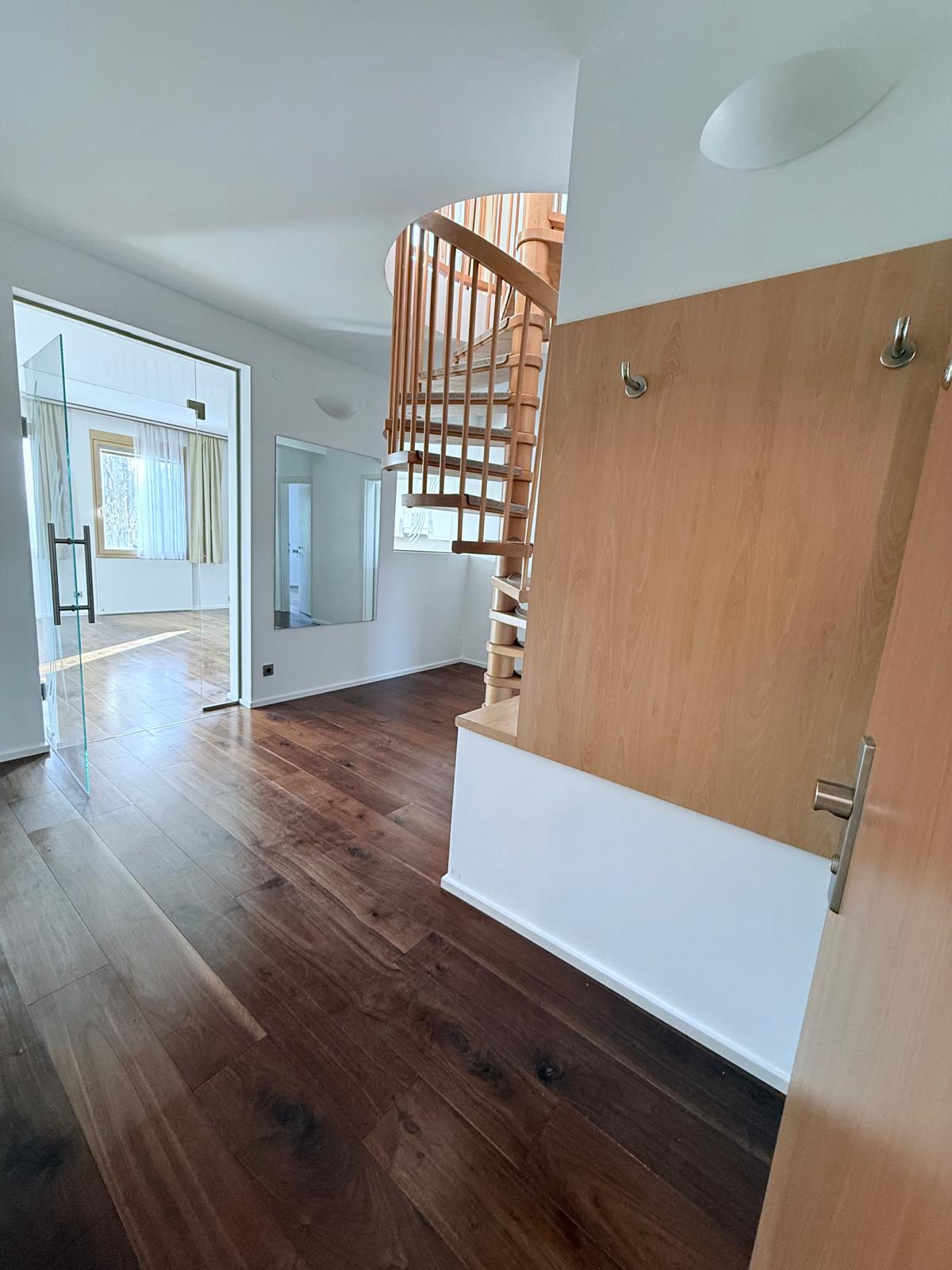 Ein wirkliches HIGHLIGHT ist die 118m² große DACHTERRASSE die über eine Wendeltreppe erreichbar ist, mit eigener Gartenhütte, Dusche und Waschbecken.