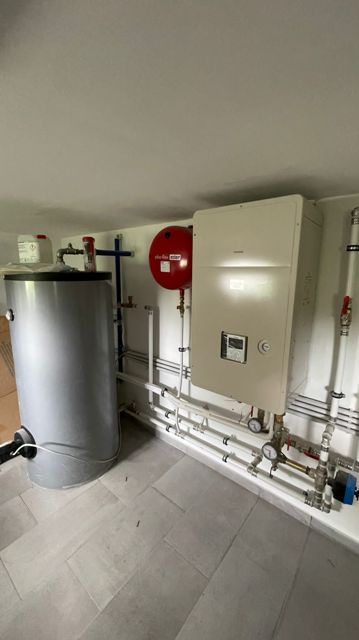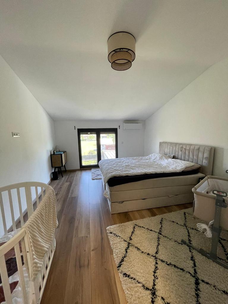 Geheizt wird mittels einer Fußbodenheizung über eine Luftwärmepumpe Marke Toshiba.