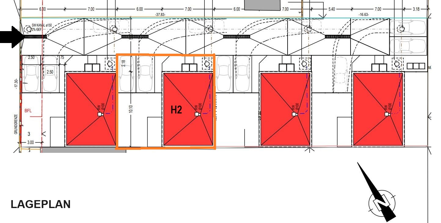 Zu dem Vorgarten/Garten von ca. 65qm kommen noch 2 Parkplätze mit ca. 25qm Fläche dazu.