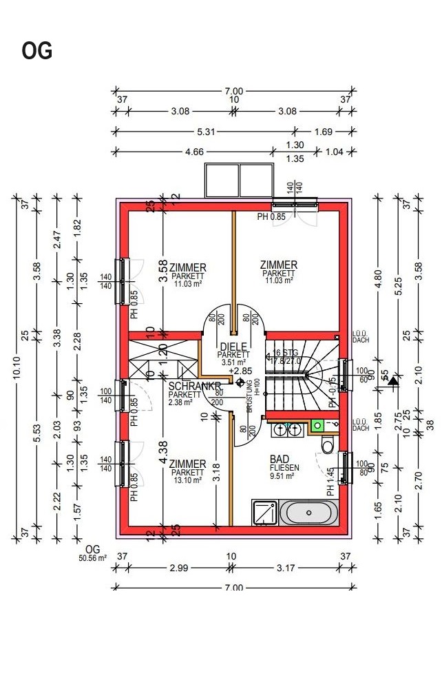 Die reine Wohnfläche beträgt ca. 106qm auf 2 Etagen.