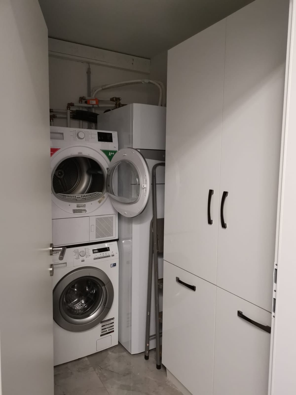 Geheizt wird mittels einer Luftwärmepumpe von Vaillant. Das gesamte Haus verfügt über eine Fußbodenheizung.